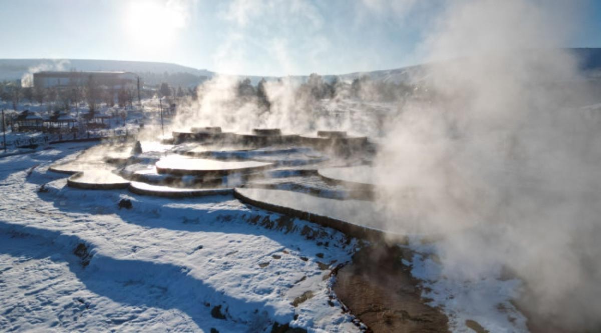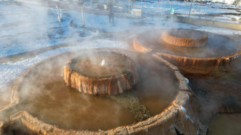 Bir yanda 45 derecelik doğal sıcak su yer alırken, hemen yanında kar ve buz ile temas etmeye olanak tanıyan Altınkale, kışın da ziyaretçi ağırlamaya devam ediyor.