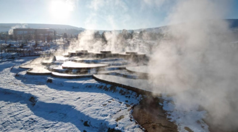 Kışın 45 derecede fışkıran sudan çıkan buharla soğuk havanın buluşması sonucu ortaya çıkan buhar görüntüsüyle büyülemeyi başarıyor.