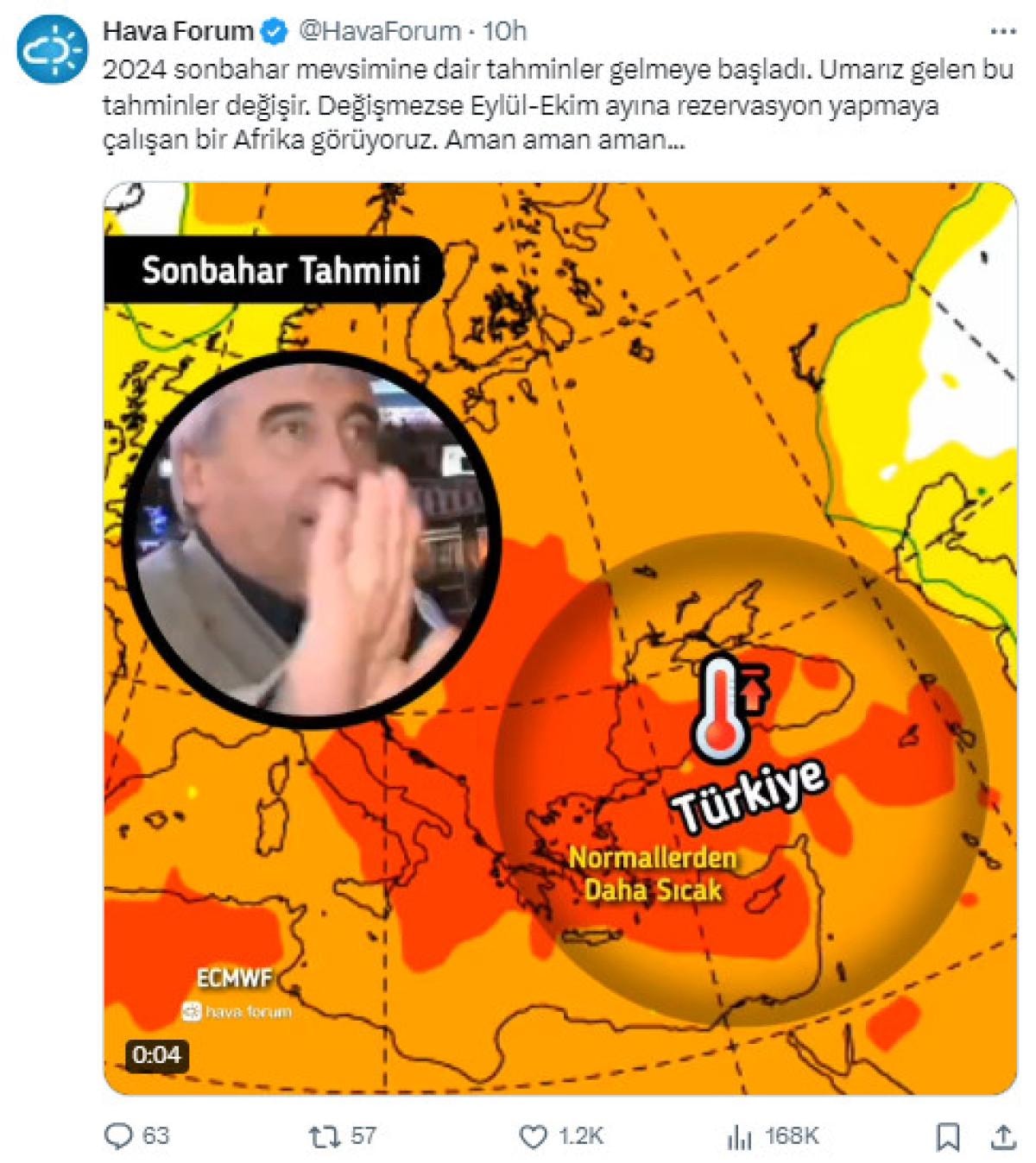 "2024 sonbahar mevsimine dair tahminler gelmeye başladı. Umarız gelen bu tahminler değişir. Değişmezse Eylül-Ekim ayına rezervasyon yapmaya çalışan bir Afrika görüyoruz. Aman aman aman..."