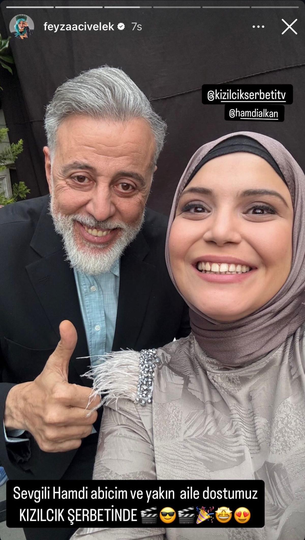 Feyza Civelek, sosyal medya hesabından yaptığı paylaşımda, "Sevgili Hamdi abicim ve yakın aile dostumuz Kızılcık Şerbeti'nde" sözlerine yer verdi.