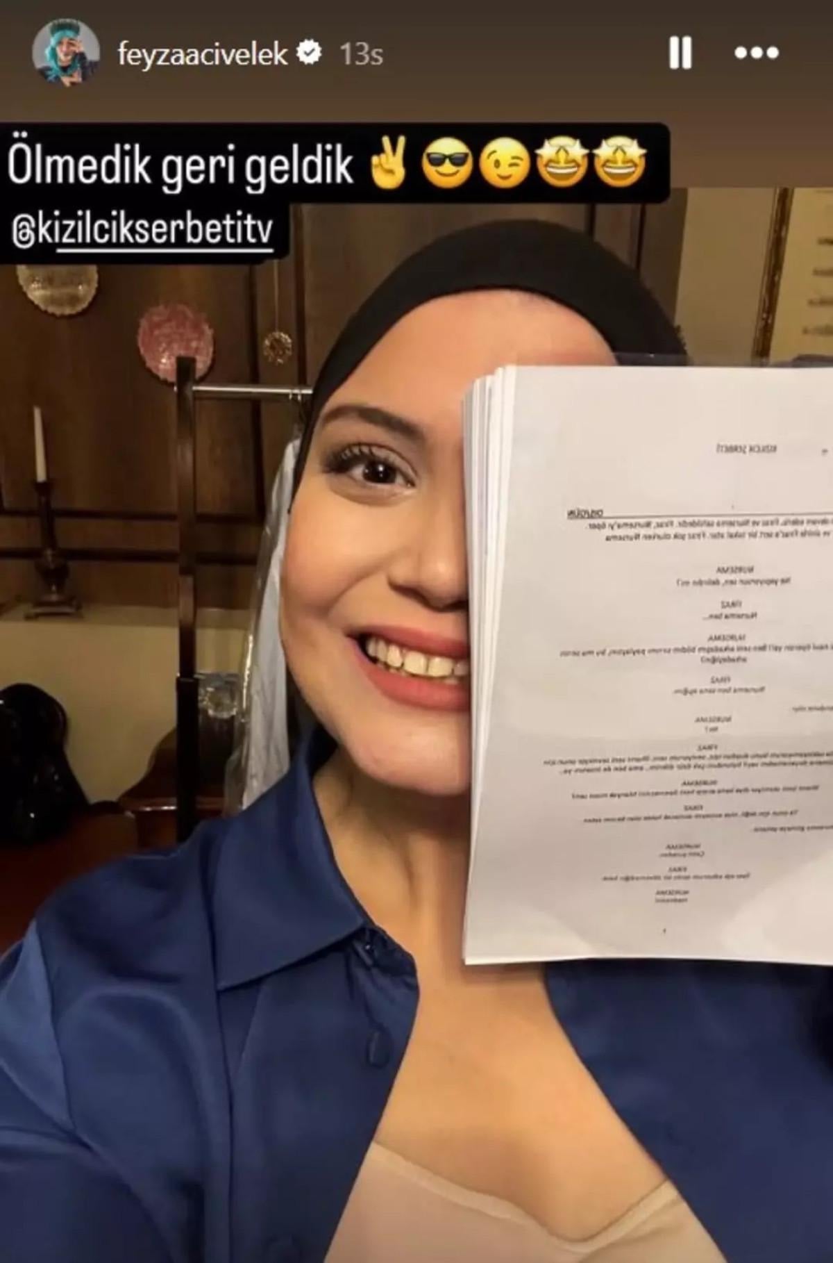 Dizide Nilay karakterine hayat veren Feyza Civelek’in sosyal medya hesabından yaptığı paylaşımda gözüken senaryo dikkat çekti.