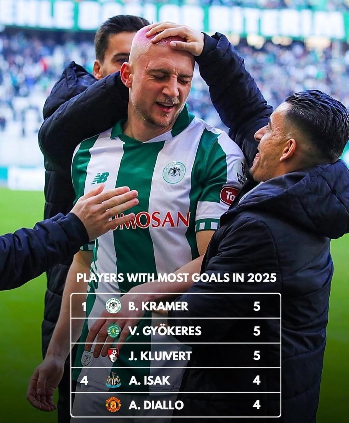 Konyaspor'un Slovenyalı golcüsü Blaz Kramer, 2025 yılında şu ana kadar dünyanın en çok gol atan 3 futbolcusundan biri oldu.