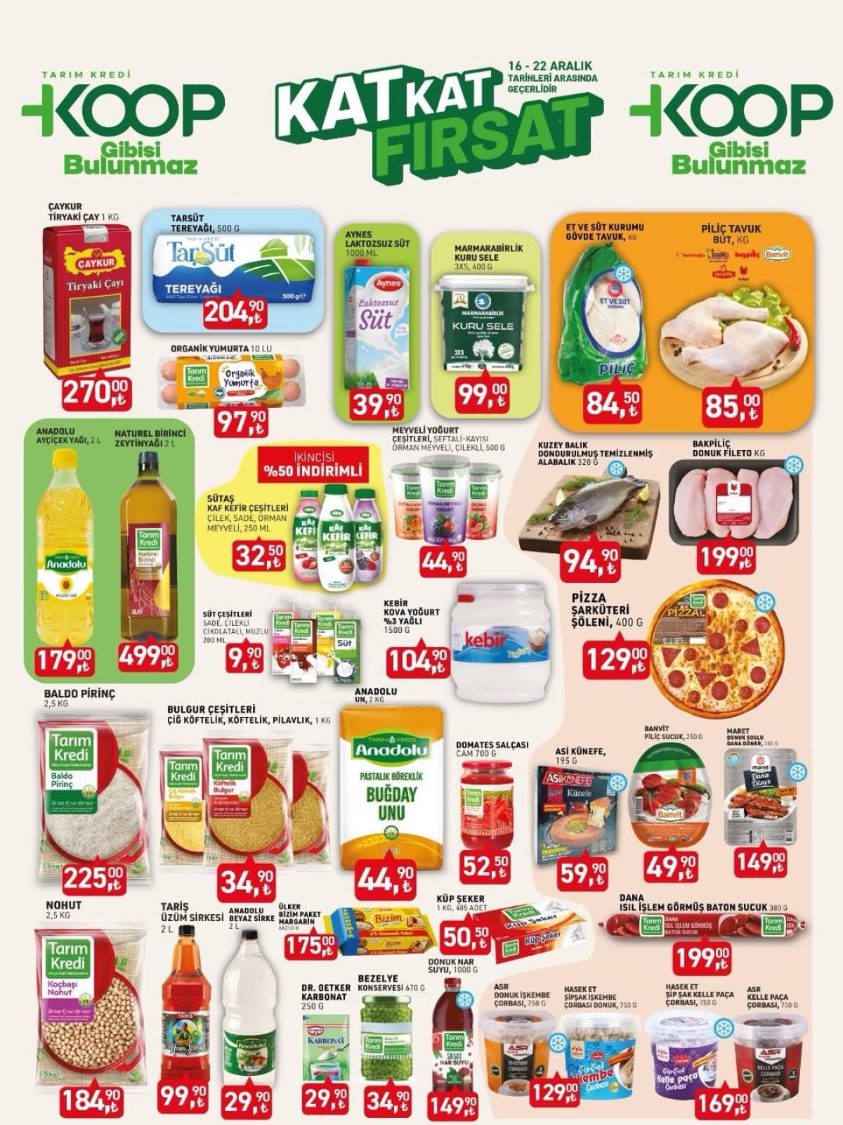 - KOOP Market, 16-22 Aralık tarihleri arasında gıda ve temizlik ürünlerinde indirim sunuyor.