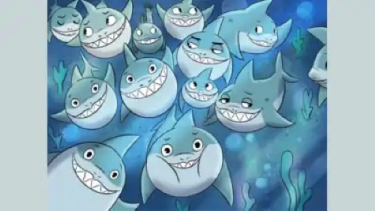 Aşağıdaki görselde gülümseyen köpekbalıklarıyla dolu bir sahneye tanık olacaksınız.