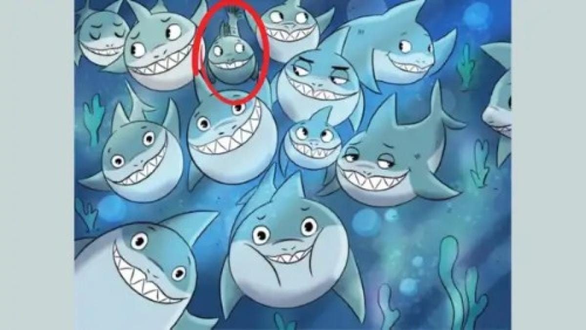 Bu optik illüzyon görüntüsüne yakından bakın ve köpekbalıkları arasında saklı balığı bulmaya çalışın.