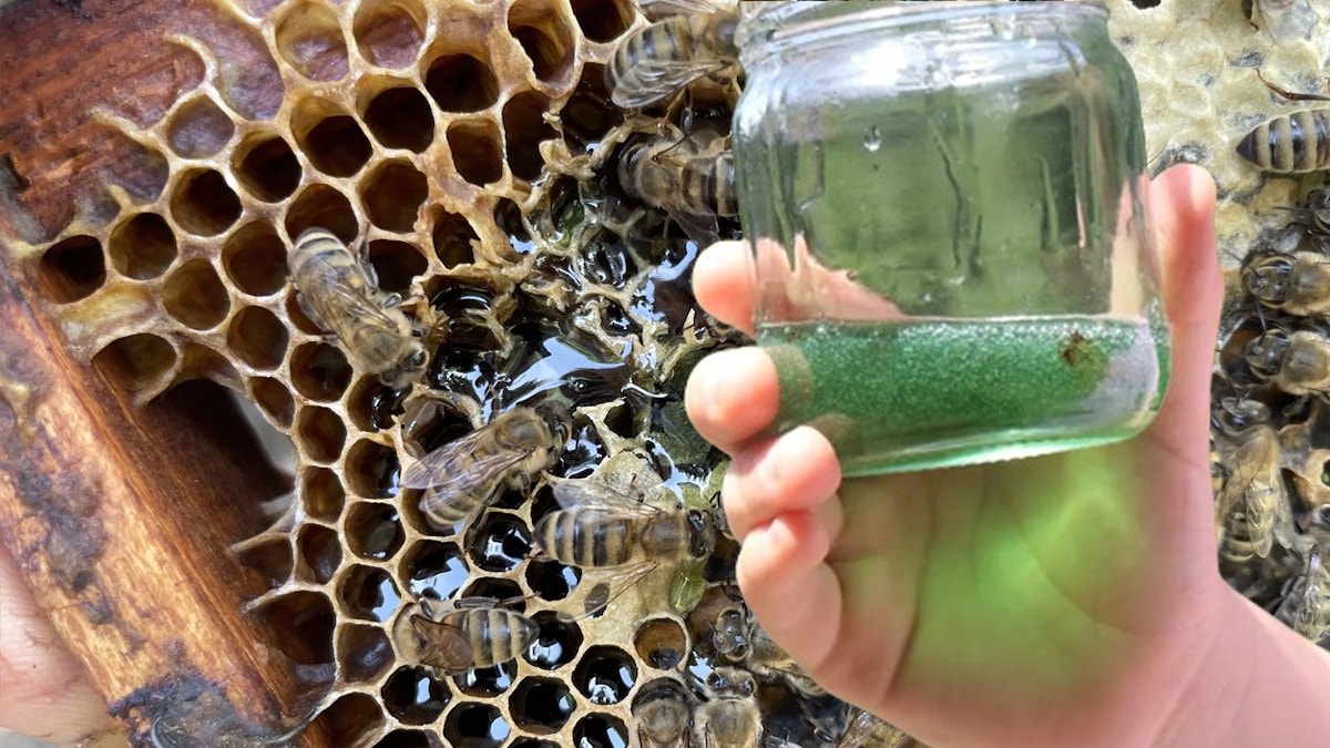 Arı kovanından çıkan yeşil balın nasıl olduğunu anlamak için hemen numune alan Uyar, incelenmesi için bal numunesini üniversiteye götürdü.