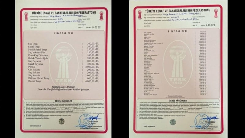 Şubat ayının son haftasında yapılan toplantıda berber ve kuaför ücretlerine yapılan zamlar kararlaştırıldı.