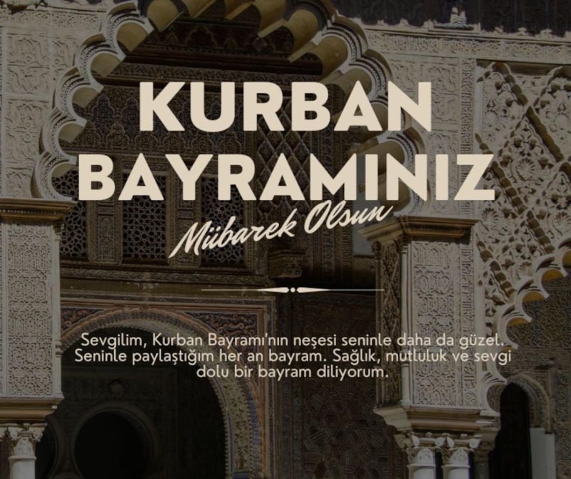 Kurban Bayramı'nda sevgi, huzur ve mutluluk sizinle olsun. Bayramınız mübarek olsun, sevdiklerinizle birlikte nice güzel bayramlara.
