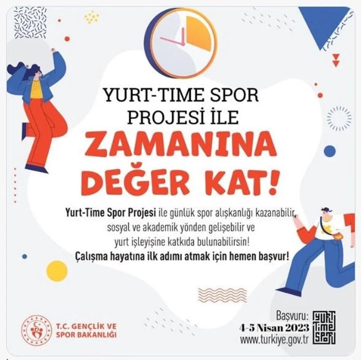 Yurt-time projesi ile KYK yurtlarında kalan öğrenciler spor faaliyetlerinde görev alabilecekler. Bu görevlendirme ile öğrenciler bir yandan para kazanırken bir yandan da sporun içinde yer alacaklar.