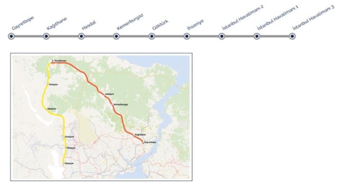 Taşoluk, Arnavutköy, Fenertepe, Kayaşehir, Olimpiyat, Halkalı Stadı, Halkalı duraklarının inşası ise devam ediyor.