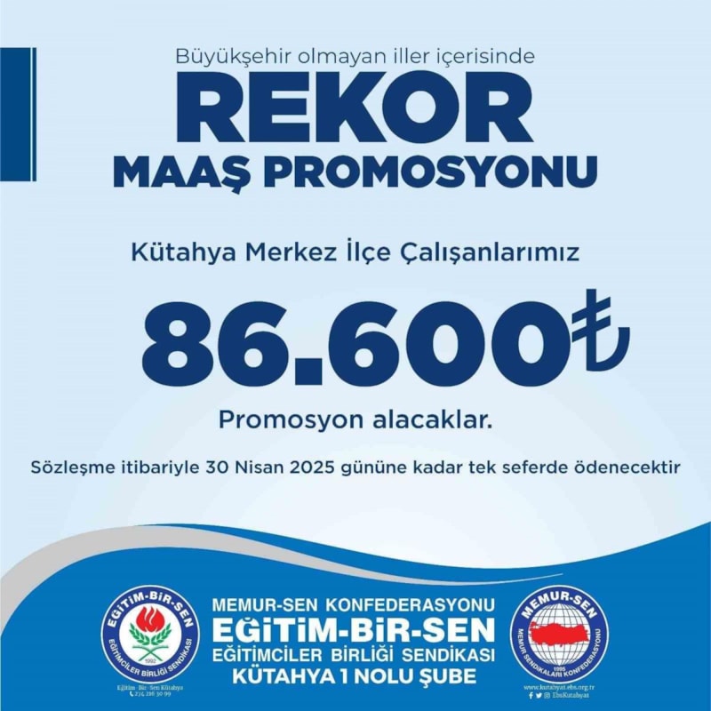Kütahya İl Milli Eğitim Müdürlüğü Merkez İlçe maaş promosyon ihalesi, 86 bin 600 TL ile sonuçlandı.
