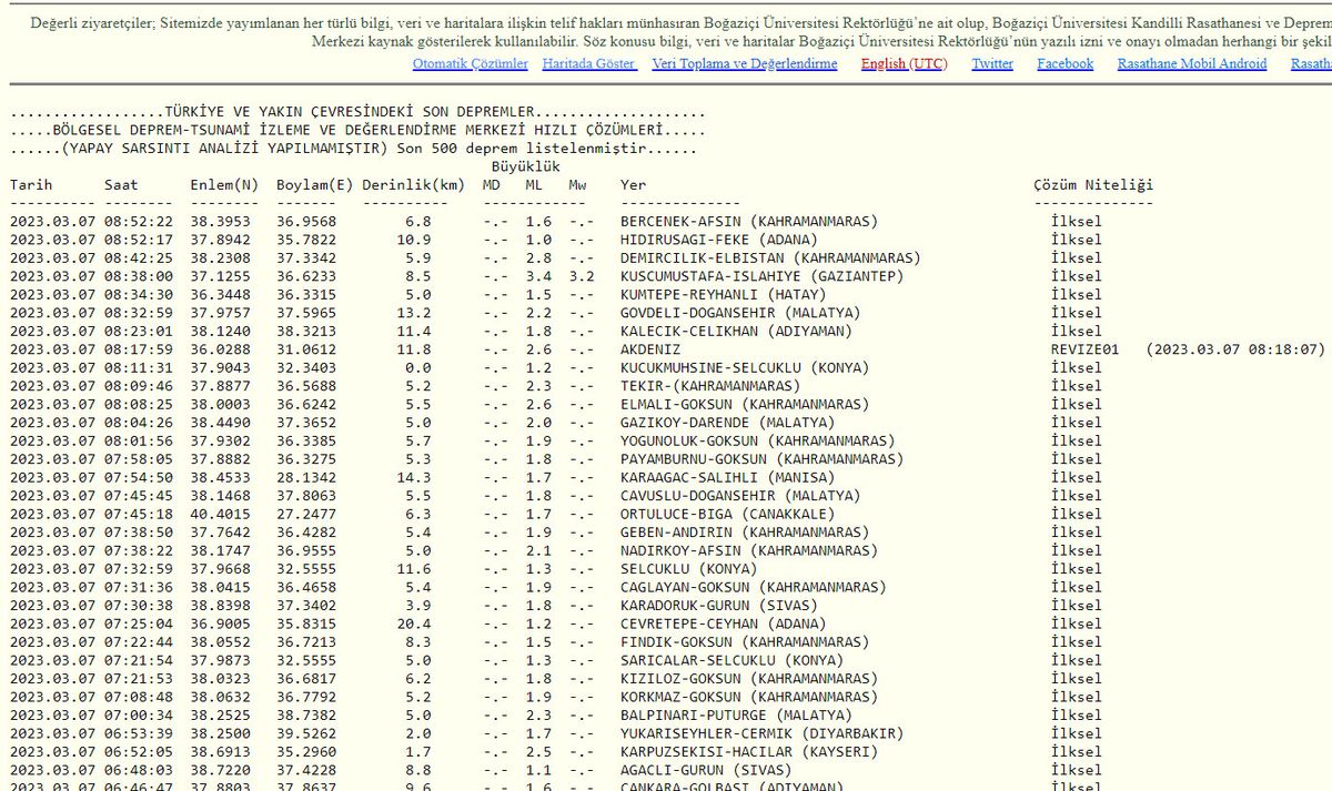 7 Mart 2023 AFAD deprem verileri: