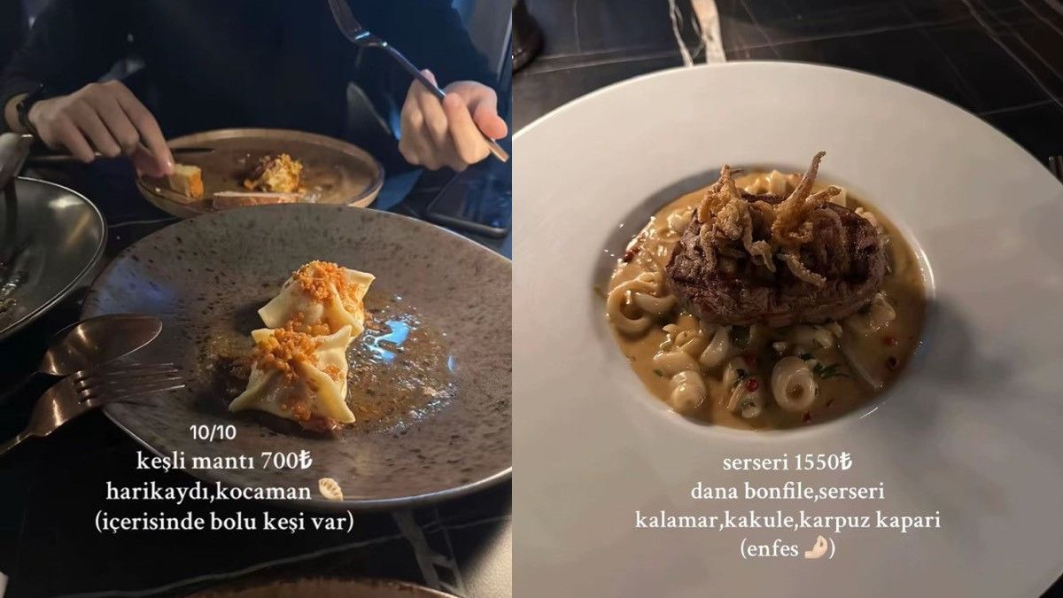 Paylaşılan fotoğraflarda, restoranda sunulan iki özel yemeğin fiyatları dikkatleri üzerine çekti.