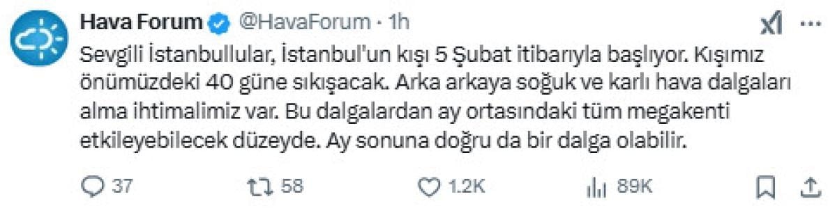 Meteoroloji kaynağı Hava Forum, önümüzdeki 40 gün boyunca İstanbul'un sert kış koşullarıyla karşılaşabileceğini belirtiyor.