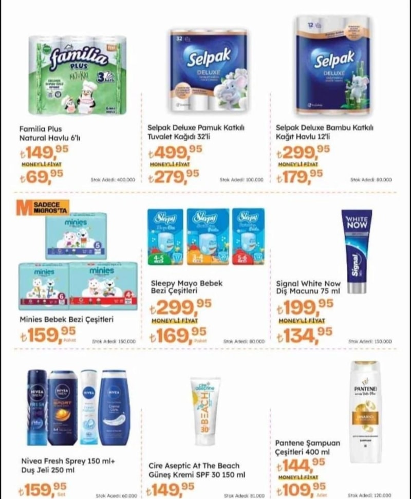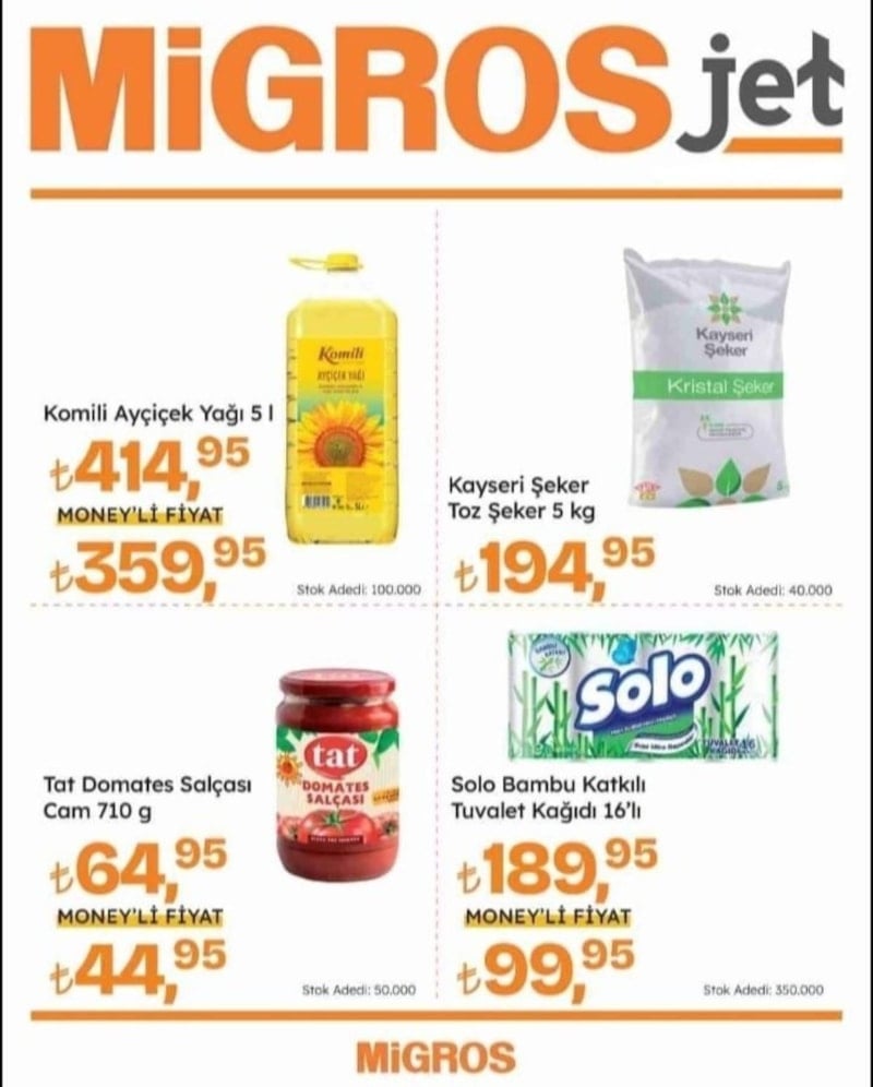 Migros Money Kart kullanıcılarına yönelik özel fırsatlar ise raflarda yerini aldı.