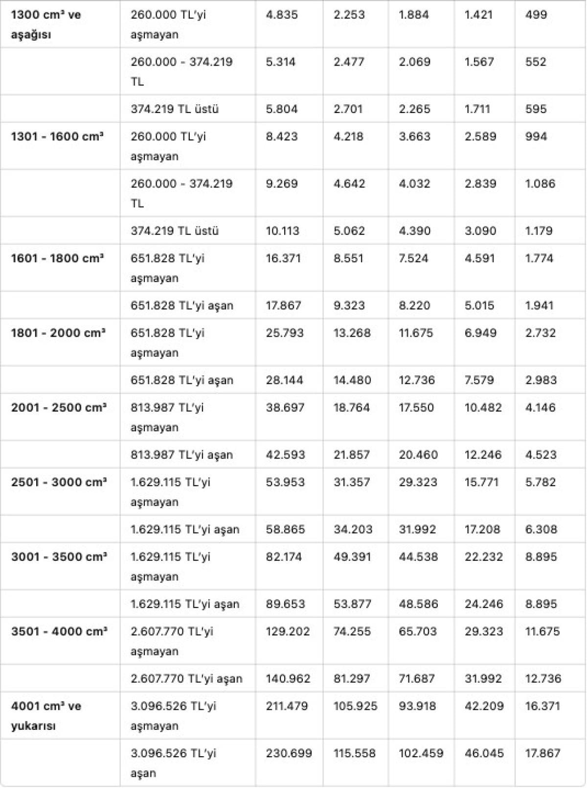 En yaygın kullanılan silindir hacmi 1301 – 1600 arası yeni otomobillerde en düşük Motorlu Taşıtlar Vergisi (MTV) de 5 bin 851 liradan 8 bin 421 liraya çıktı.