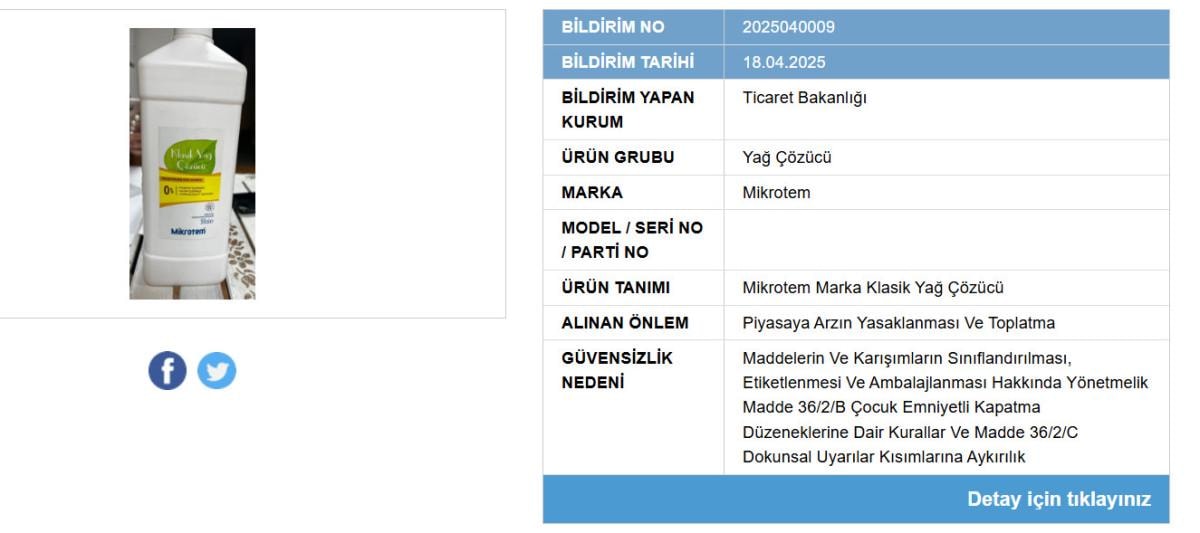 Son olarak Mikrotem markasına ait yağ çözücü, Ticaret Bakanlığı tarafından güvensiz bulundu.
