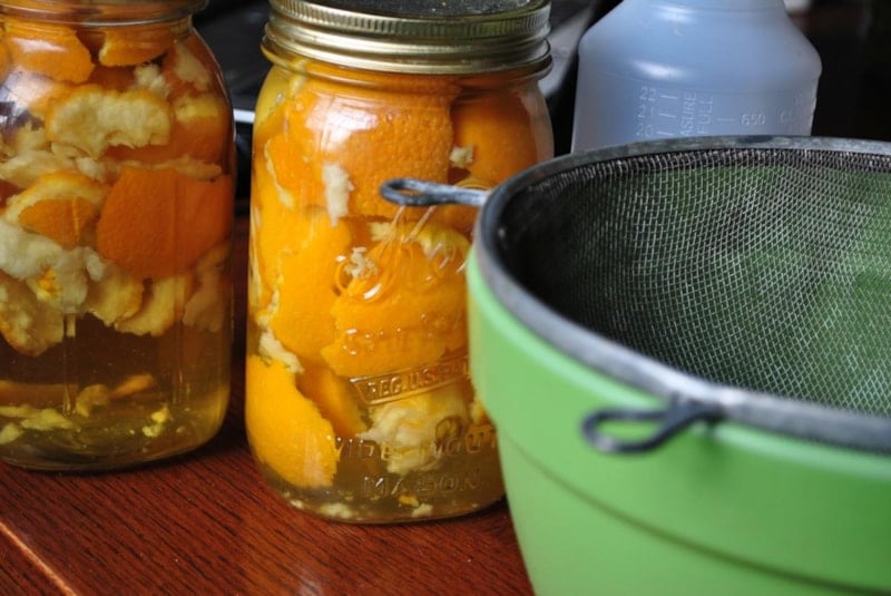 2 haftalık fermantasyon süreci tamamlandığında sirkeyi süzün. Kabukları atın ve sıvıyı bir başka kavanoza alın.