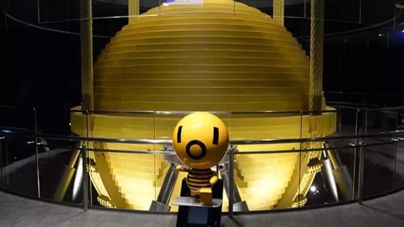 Yapının en dikkat çekici olan ve 730 ton ağırlığındaki altın renkli küresi, rüzgârın ve depremin güçlerine karşı koyarak hafifçe ileri geri sallanıyor.