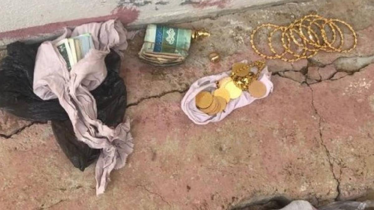 Toprağın altından 4.734 dolar, 260 euro, 58 farklı ülkeye ait banknot, 12 Cumhuriyet altını, 7 altın bilezik, 1 altın zincir, 3 altın yüzük, 7 farklı tasarımı olan tespihler ve kişisel eşyalar ele geçirildi. Ayrıca 2 pasaport ve farklı isimlere düzenlenmiş kurum ve banka kartları da bulundu.