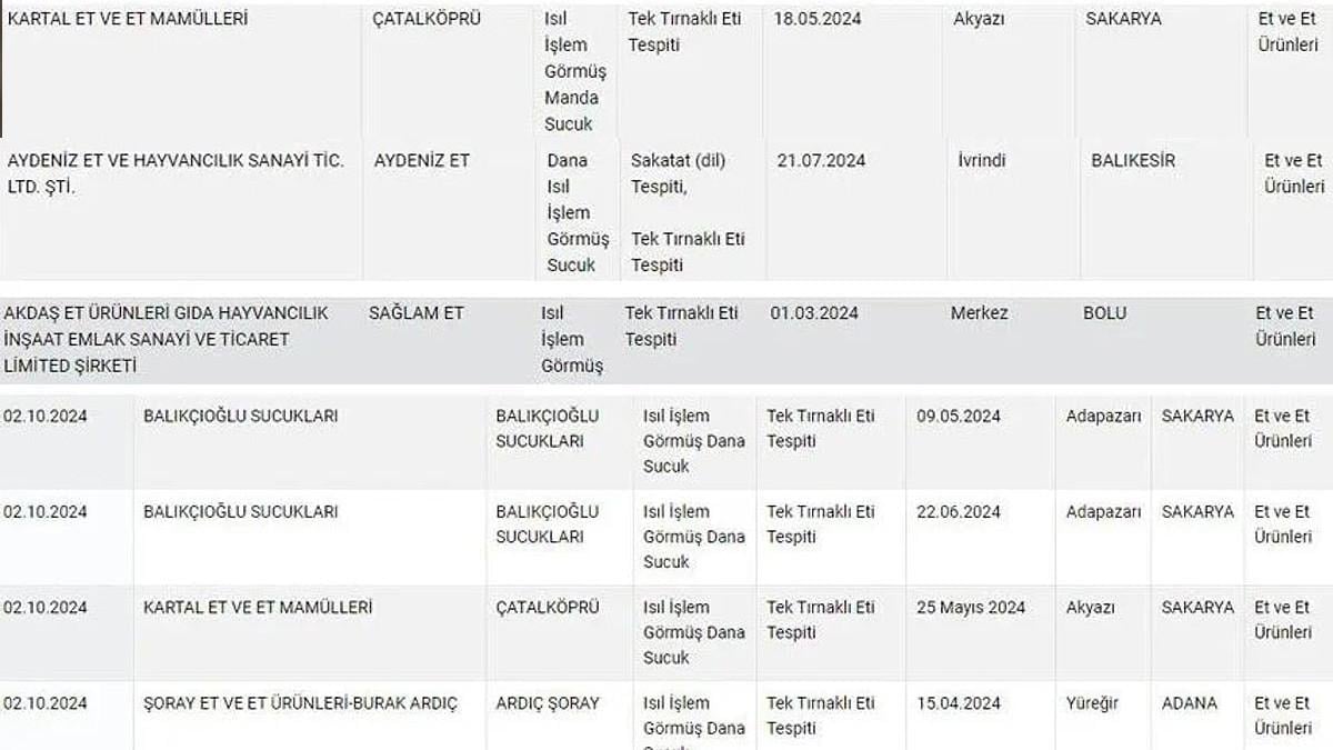 Salça, peynir, köfte, döner ve zeytinyağı üretimindeki sahtekarlıkların yanına sucukta eklendi. O markalara ait olan firmaların ürünlerinde tek tırnaklı eti kullanıldığı Tarım ve Orman Bakanlığı tarafından yayınlanan listeyle birlikte ortaya çıktı.
