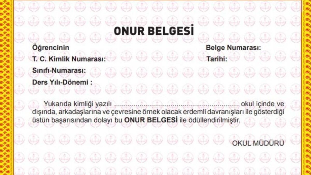 Ancak bu belge, yalnızca akademik başarıya göre değil, öğrencinin davranışları, okul içi ve dışı tutumu, sosyal etkinliklere katılımı ve disiplin durumu gibi pek çok kriter göz önünde bulundurularak veriliyor.