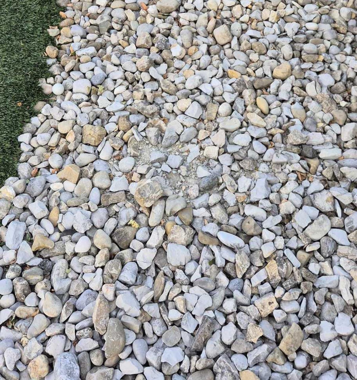 Yukarıdaki görselde, görünür çakıl taşlarının bulunduğu bir dış mekan manzarası görülmektedir.