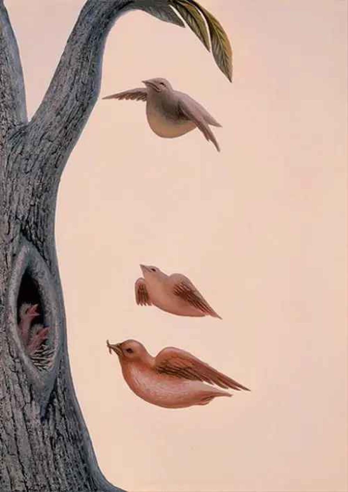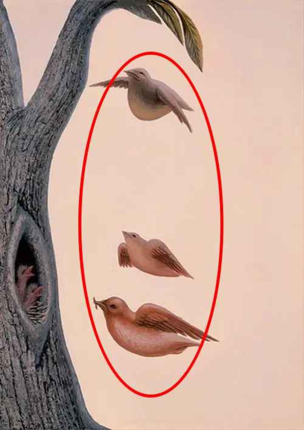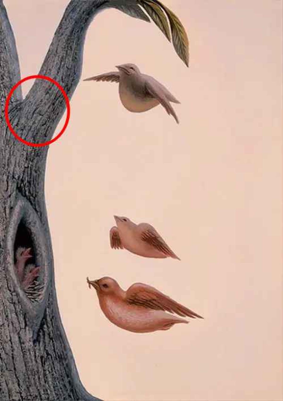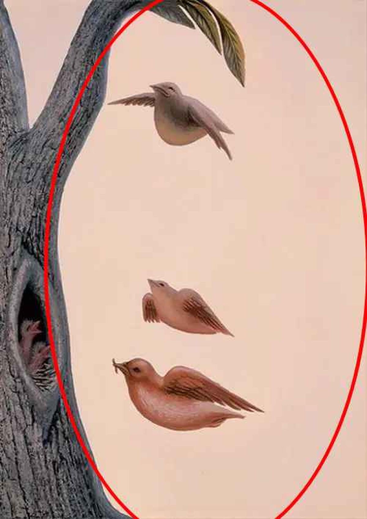 Şimdi, resimde üç şey var. Biri ağaç, diğeri kuşlar ve üçüncü kısım bir kadının yüzü.