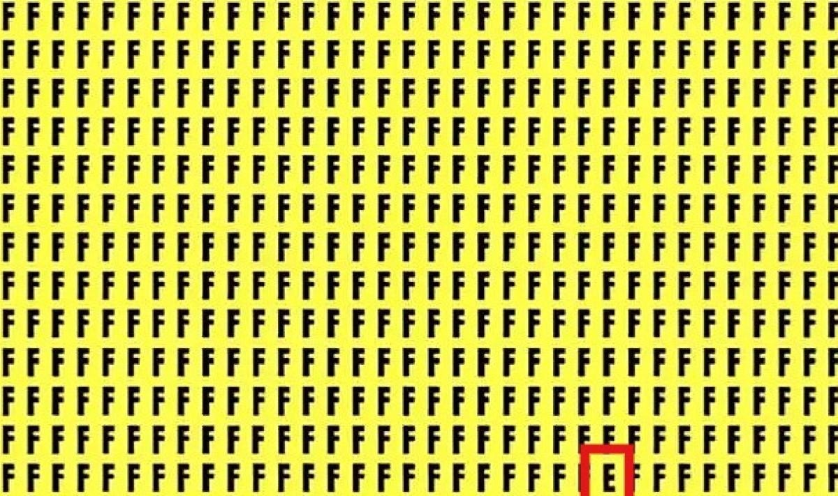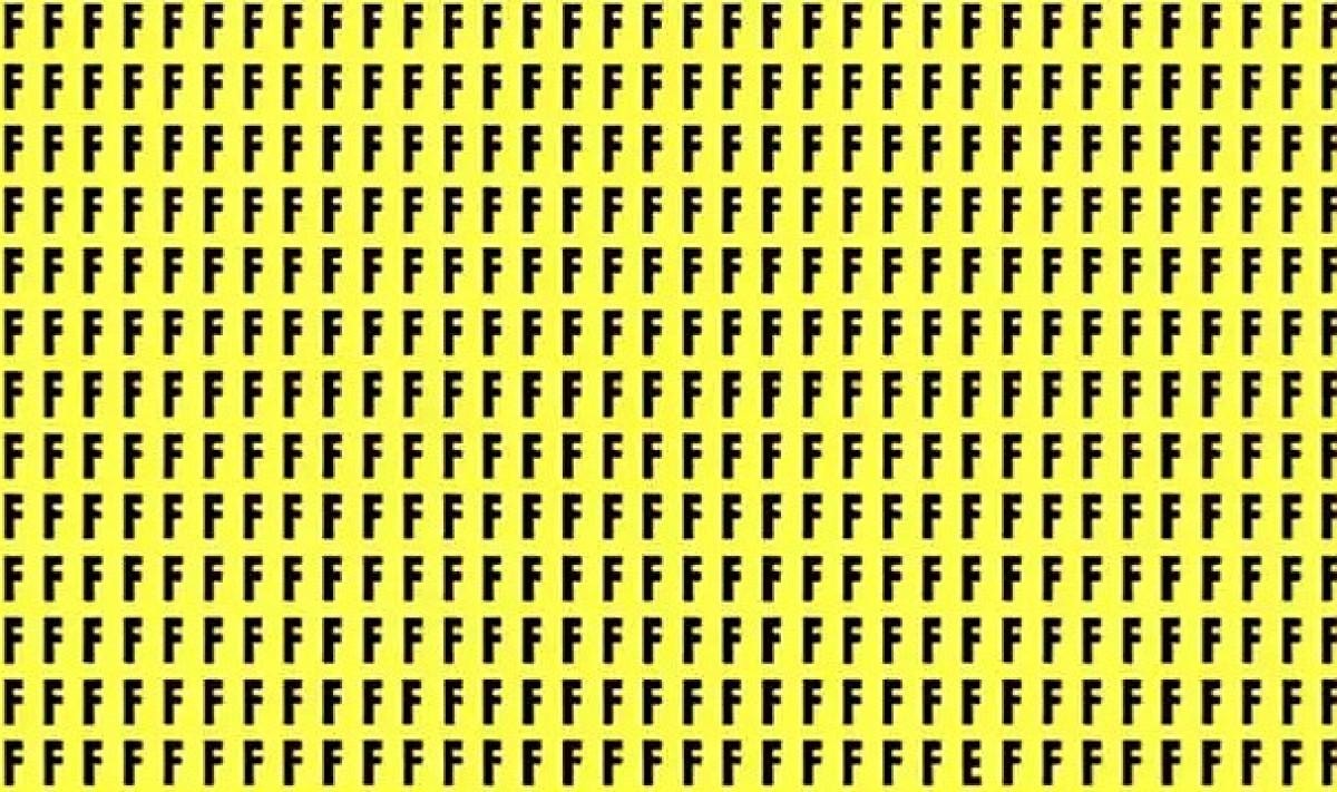 Aşağıdaki görselde bir sayfa dolusu F harfi göreceksiniz. Fakat bu F harfleri arasına gizlenmiş farklı bir harf daha var.