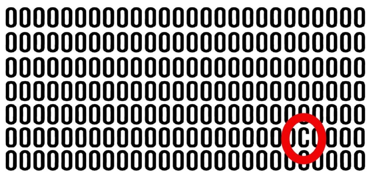 Görselde onlarca '0' sayısı bulunuyor. Bu sayıların arasında kimsenin fark edemediği bir harf yer alıyor.