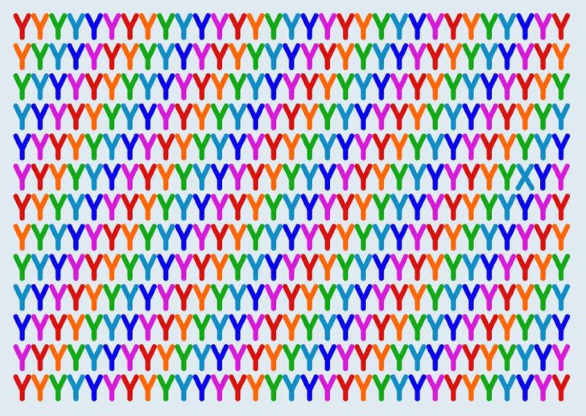 Bu görsel, bir Y harfi koleksiyonunu içeren eğlenceli bir görsel zeka bulmacasıdır. İlk bakışta, hepsi birbirine çok benziyor. Ancak Y harflerinin arasında gizli bir X harfi var.