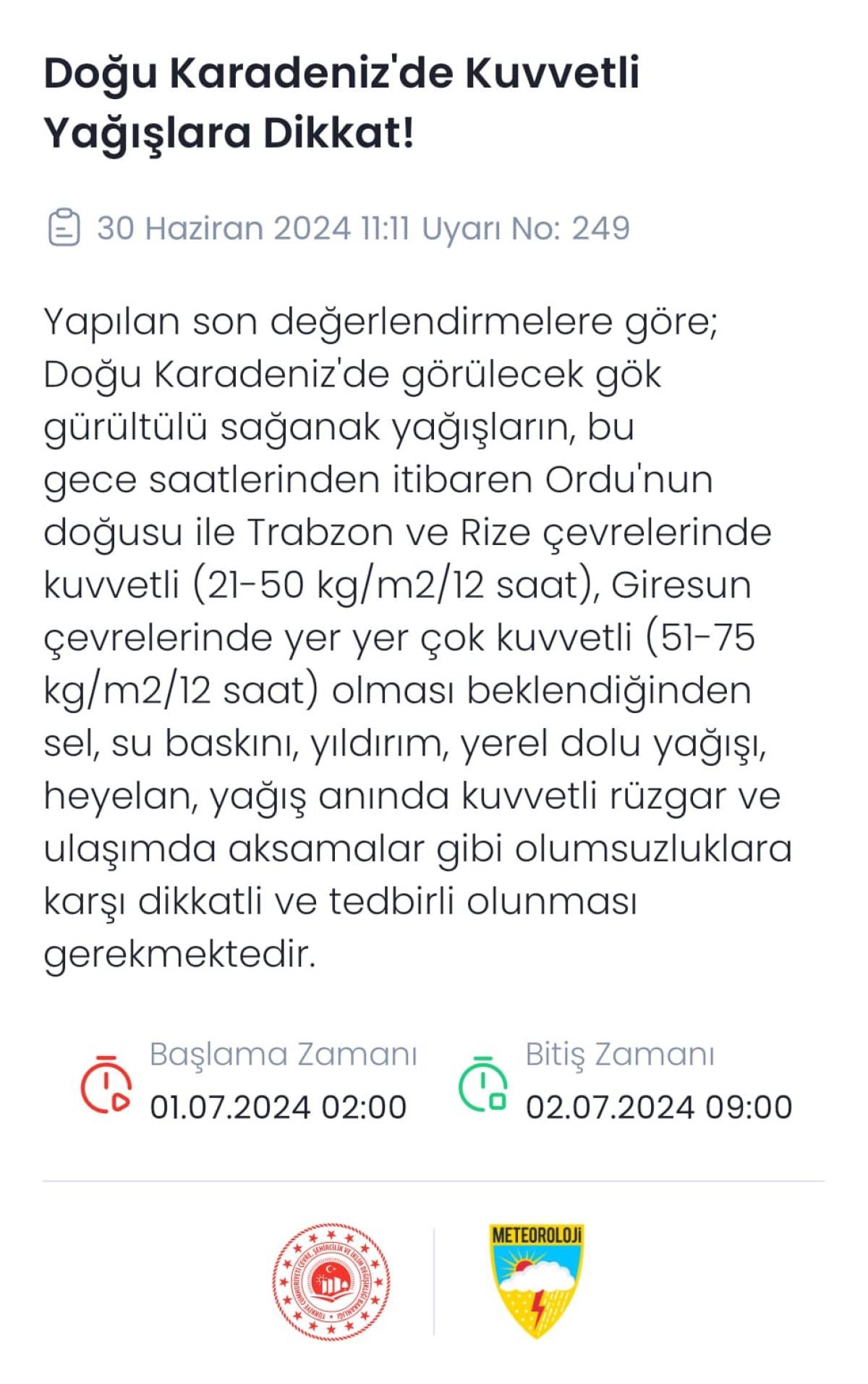 Ordu, Trabzon, Rize ve Giresun için Meteoroloji Genel Müdürlüğü'nden önemli bir uyarı geldi.