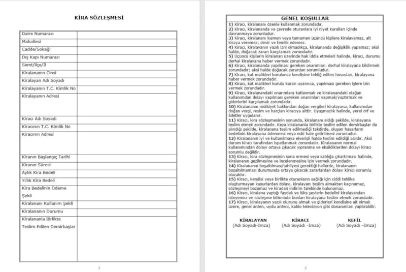 İşte kira sözleşmesi örneği ve detaylar...