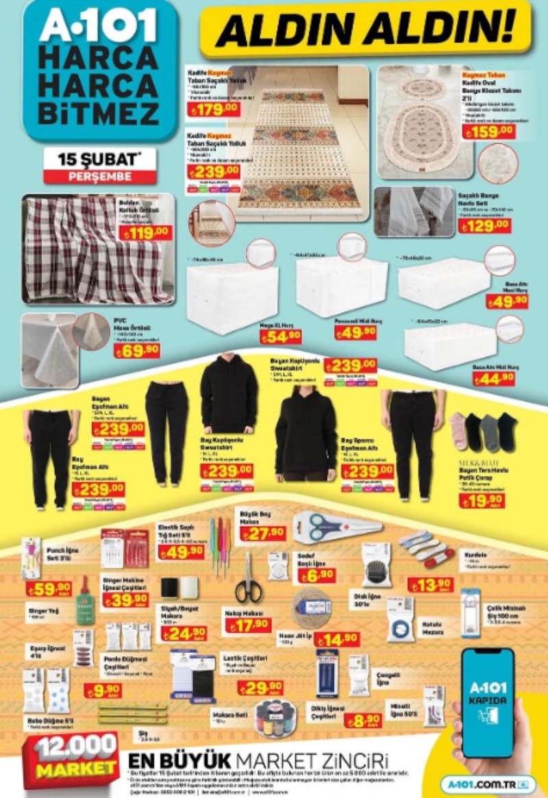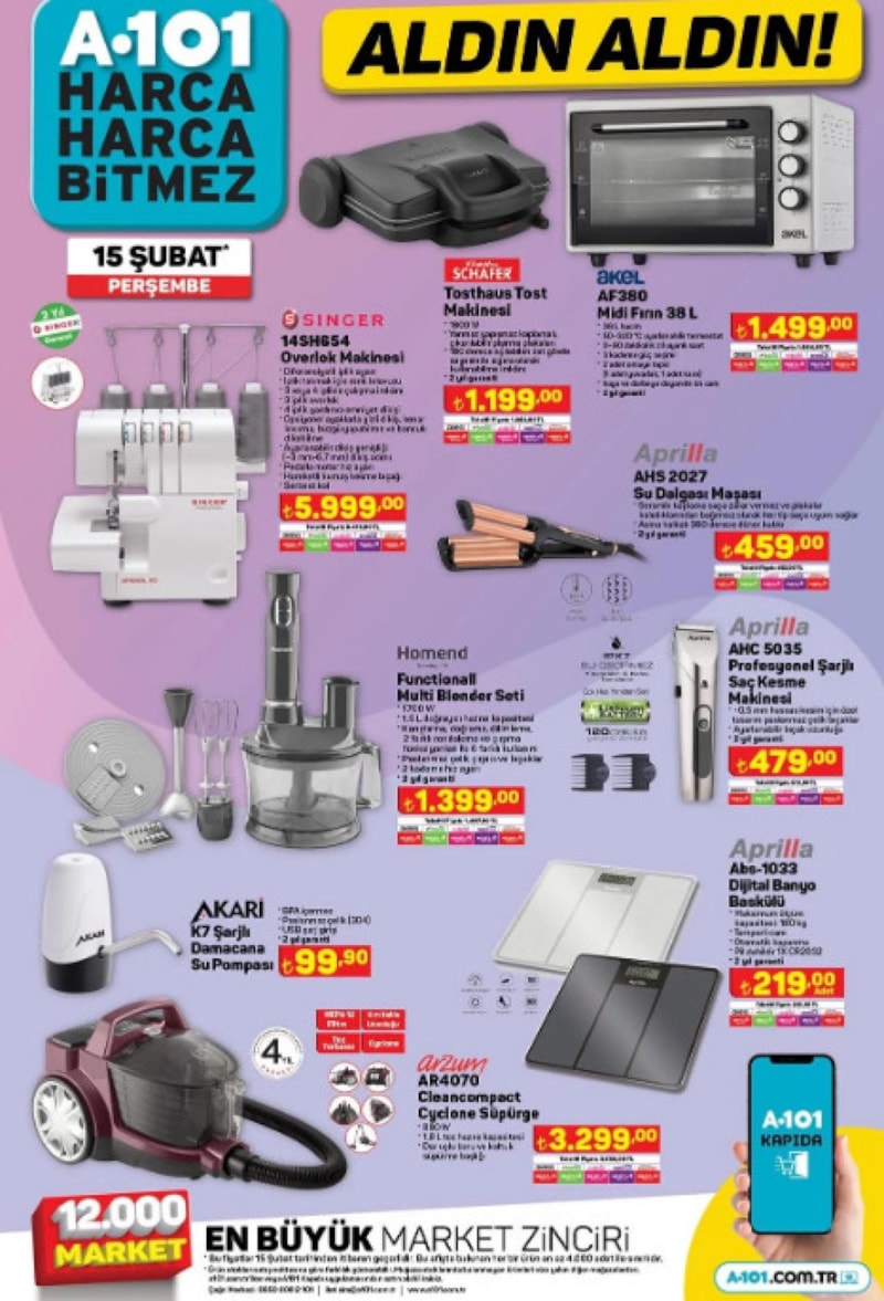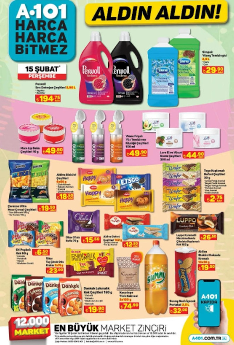 Merakla beklenen A101'in en yeni kataloğu sonunda yayınlandı. 15 Şubat Perşembe günü başlayacak olan bu muhteşem katalog, alışveriş tutkunlarını birbirinden cazip fırsatlarla buluşturuyor. Gıda ürünlerinden ev gereçlerine, elektronikten tekstil ürünlerine kadar geniş bir yelpazede indirimler sizleri bekliyor. Bu fırsatı kaçırmayın!