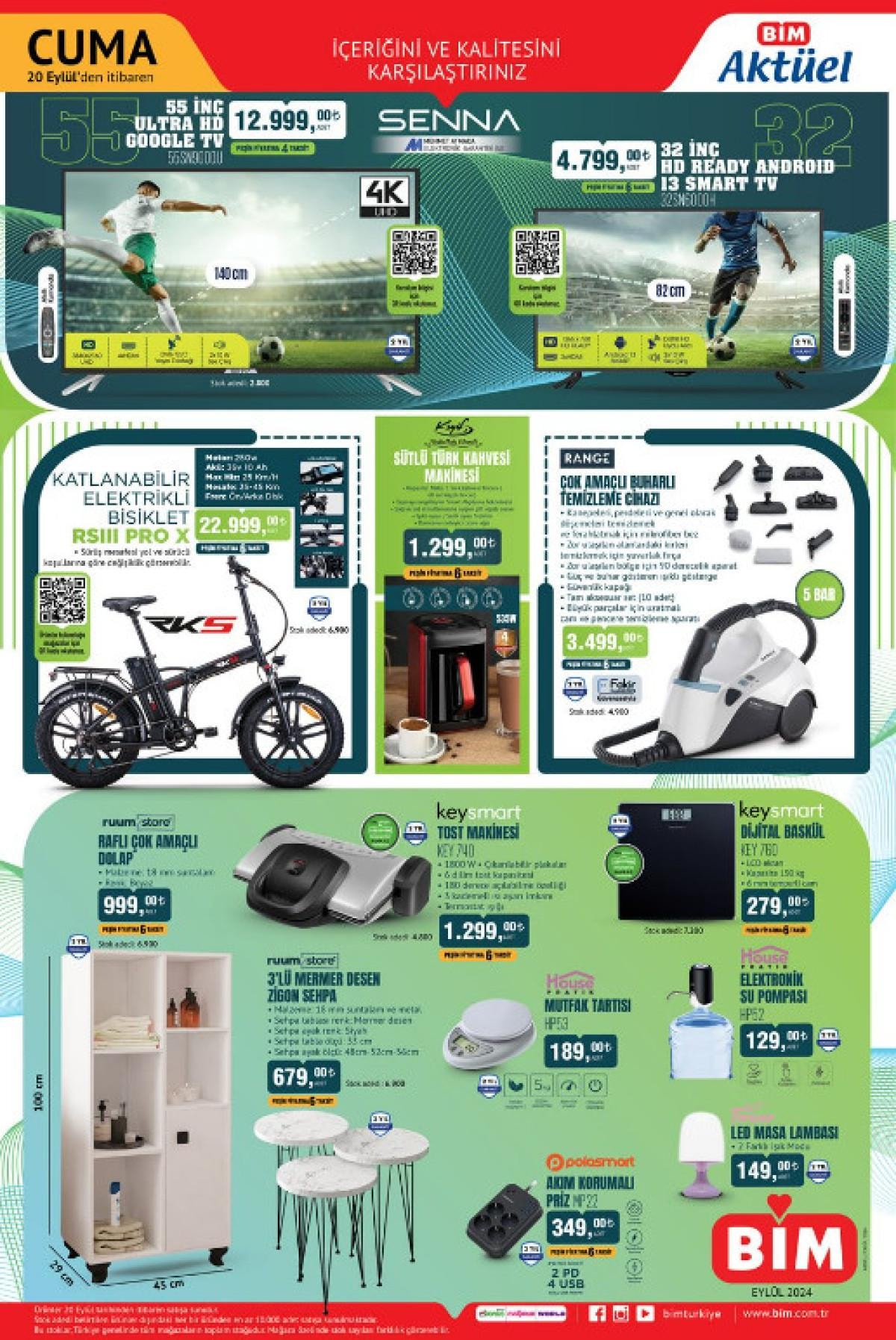 Televizyondan elektrikli bisiklete, sütlü Türk kahvesinden buharlı temizleme cihazına kadar her şey BİM raflarında yerini alacak.