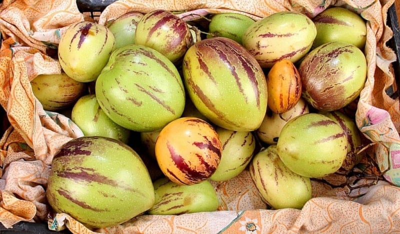 İçinde tohum bulunmayan pepino meyvesi, kabukları soyulduktan sonra bütün bir halde tüketilebilir.