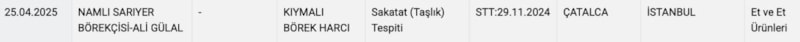 İstanbul’da yer alan Namlı Sarıyer Börekçisi’nde ise kıymalı börek harcında sakatat tespit edildi.