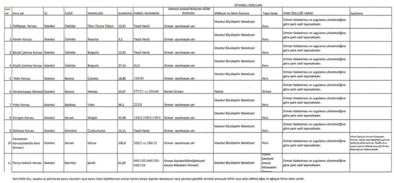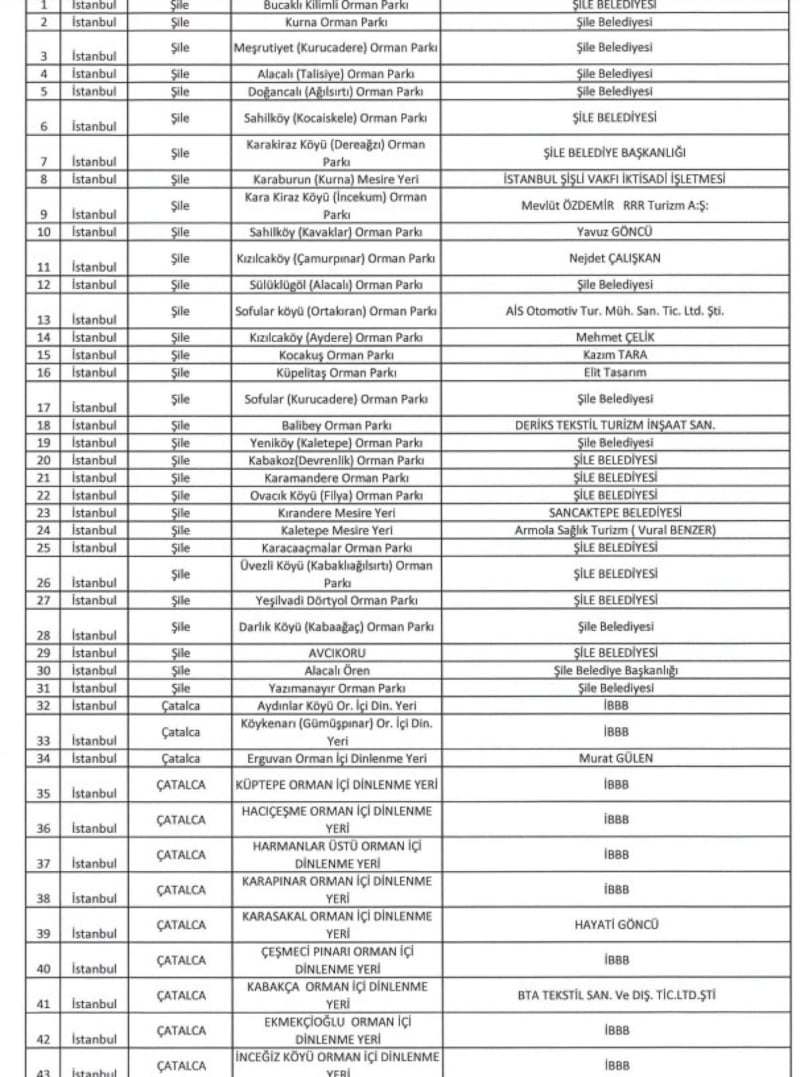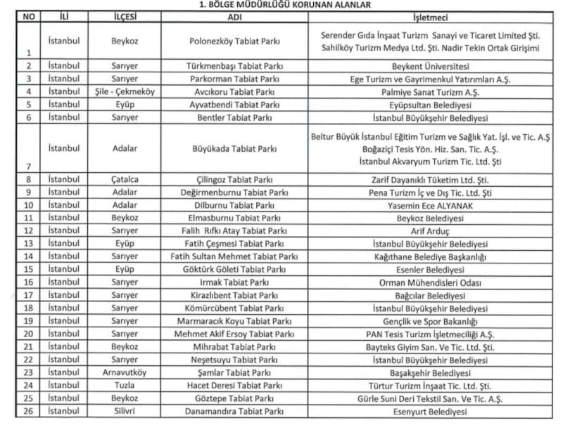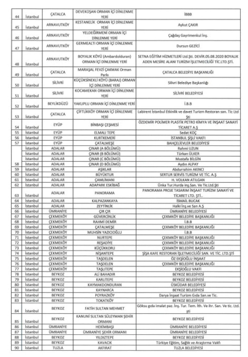 İstanbul İli sınırları dahilinde ekli listede yer alan piknik ve mesire alanları, tabiat parkları, korular, parklar ve eko turizm alanlarında piknik yapmak, spor, yürüyüş vb. faaliyetlerde bulunmak serbesttir.