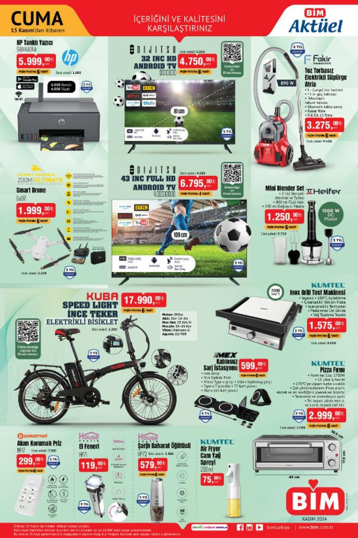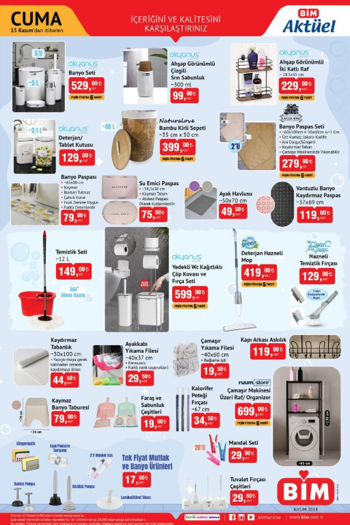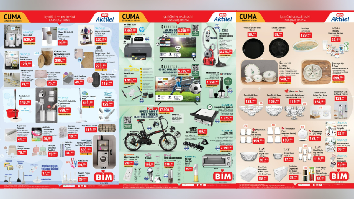 15 Kasım 2024 tarihli BİM aktüel ürünler kataloğu, geniş bir ürün yelpazesiyle dikkat çekiyor.