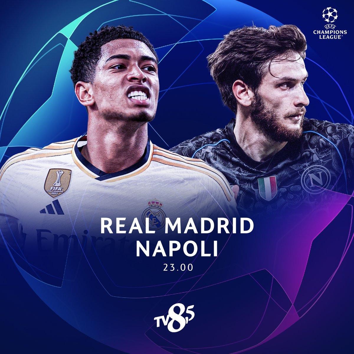 Real Madrid-Napoli maçı, bu akşam saat 23.00'te TV8,5 ekranlarında canlı yayınlanacak.