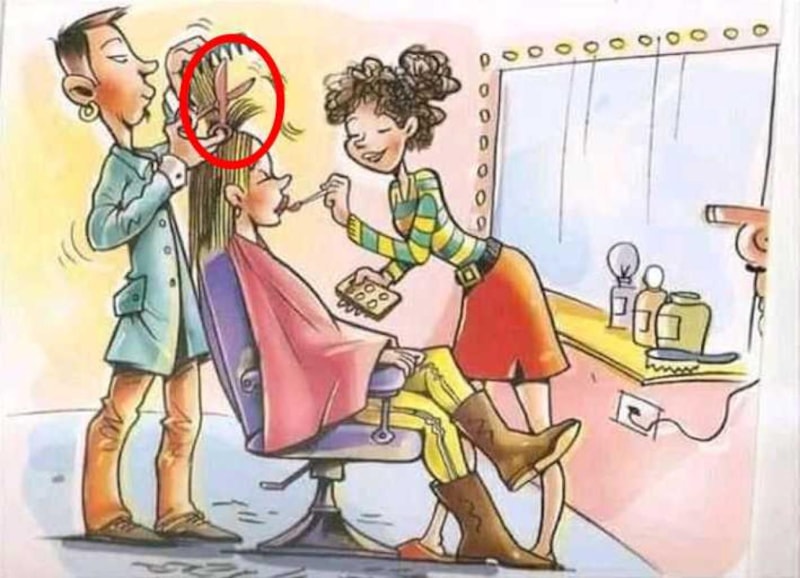 Yukarıdaki görselde bir güzellik salonu sahnesi ve bir bayanın kuaförde saç kesimi ve makyaj uygulaması yapılıyor.