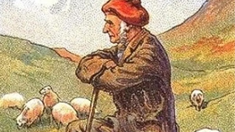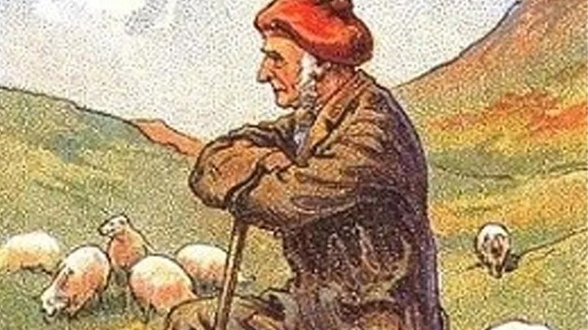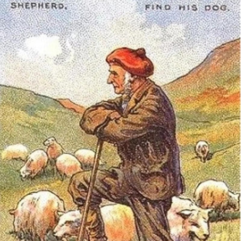 Görselde bir koyun sürüsü ve çobanın olduğu bir sahne var. Ancak, dikkatlice bakıldığında resmin içine saklanmış bir köpeği de fark edebilirsiniz.