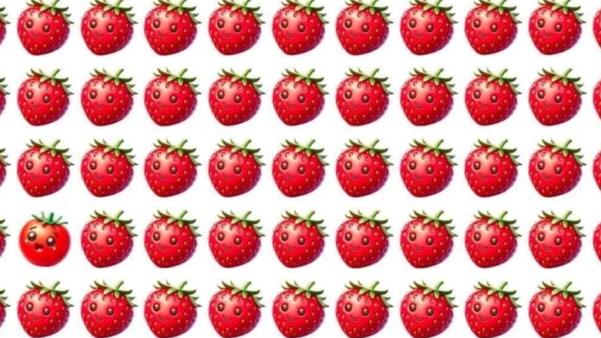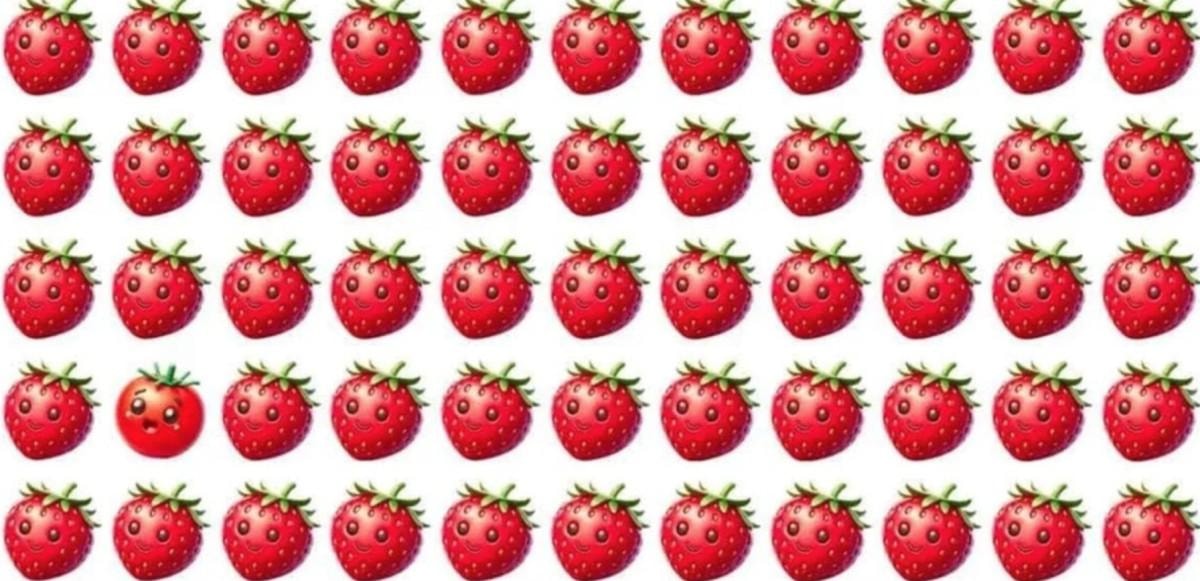 Sol alt kısımda bulunan çileğin farklı olduğunu 4 saniyede görebilenler, şahin kadar keskin gözlere sahip sayılıyor.