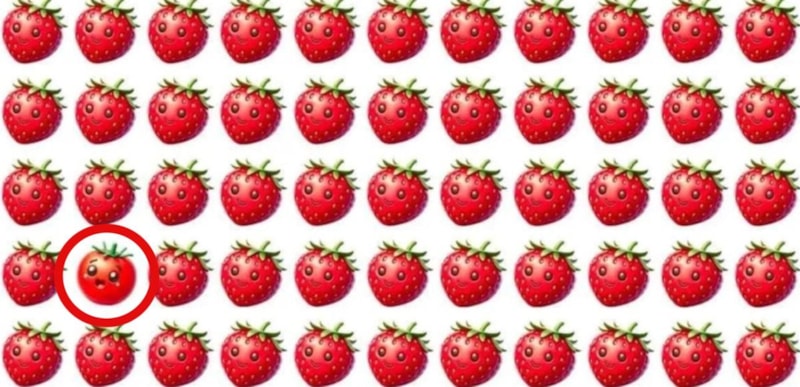 Teste katılanlardan çilek ile dolu olan resimde farklı olan çileği en kısa sürede bulmaları istendi.