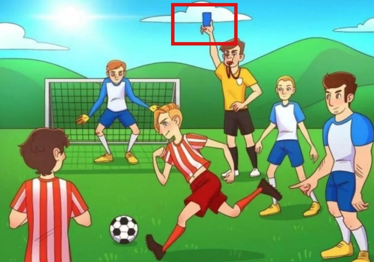 Resimdeki mantık hatası hakemin elinde kaldırdığı kartın rengidir. Futbolda mavi kart yoktur.