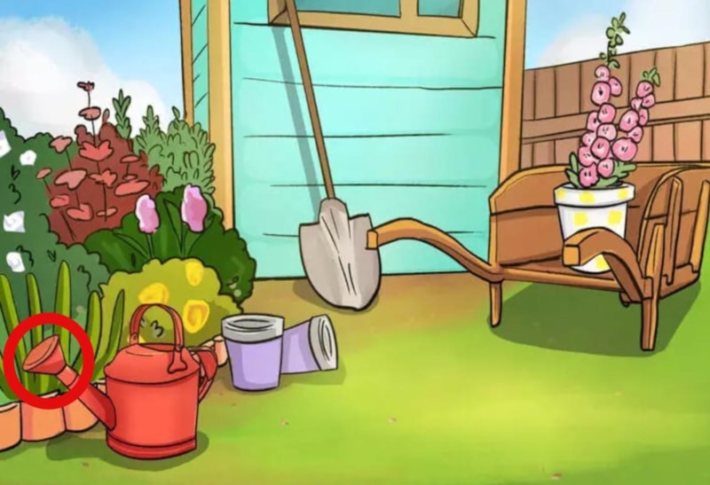 Resimdeki mantık hatası sulama bidonunda bulunuyor. Sulama bidonunun ağzı delikli olması gerekirken düz olarak tasarlanmış.
