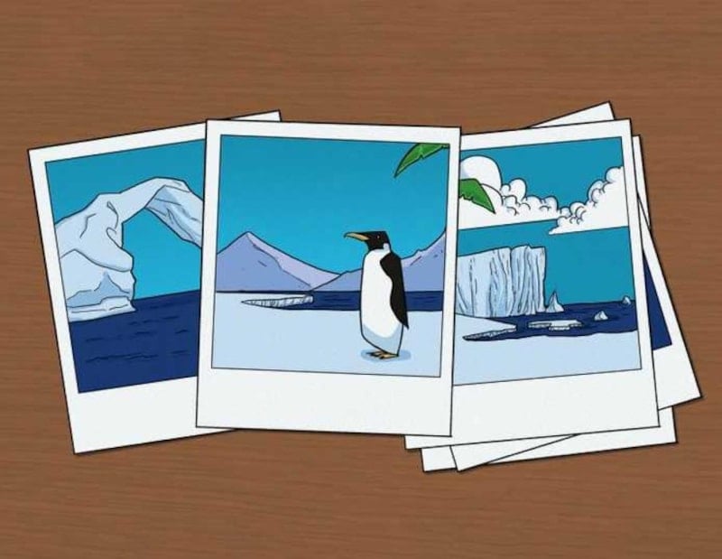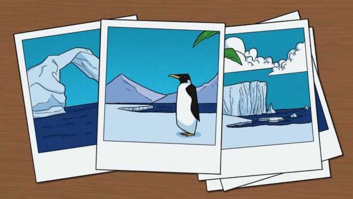 Resimdeki hata, palmiye ağacının yapraklarını göstermesidir. Ancak, Antarktika'da palmiye ağacı yoktur.
