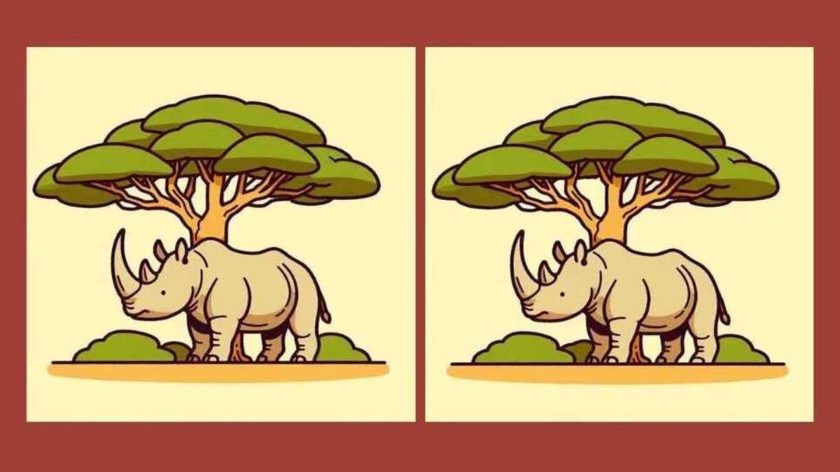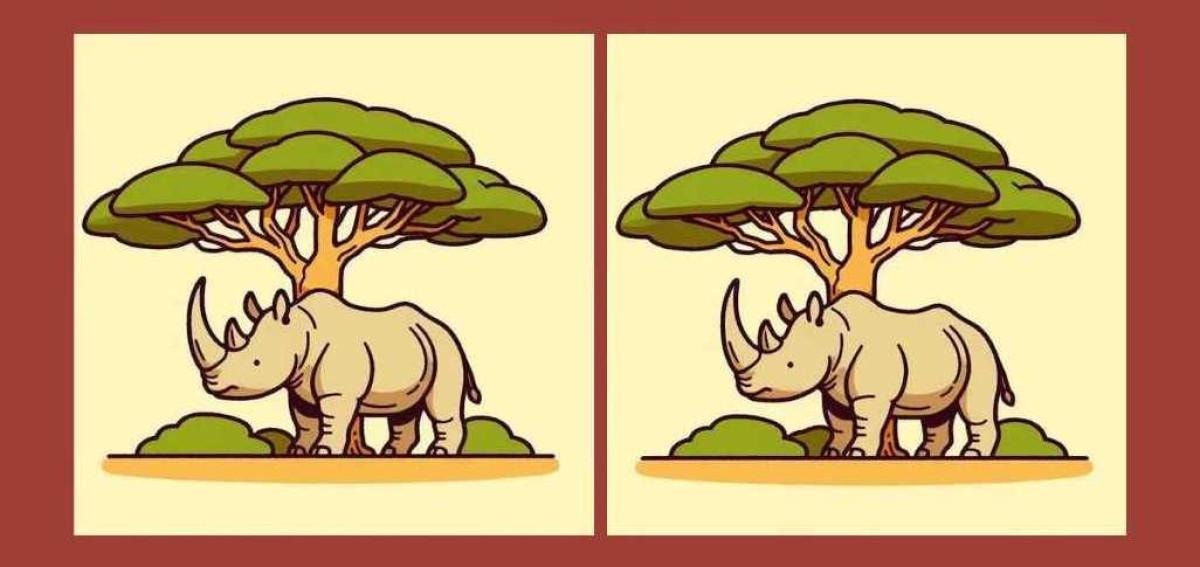 Yukarıdaki resimde iki ağaç ve iki gergedan yer alıyor. İlk bakışta iki resim de aynı görünüyor.