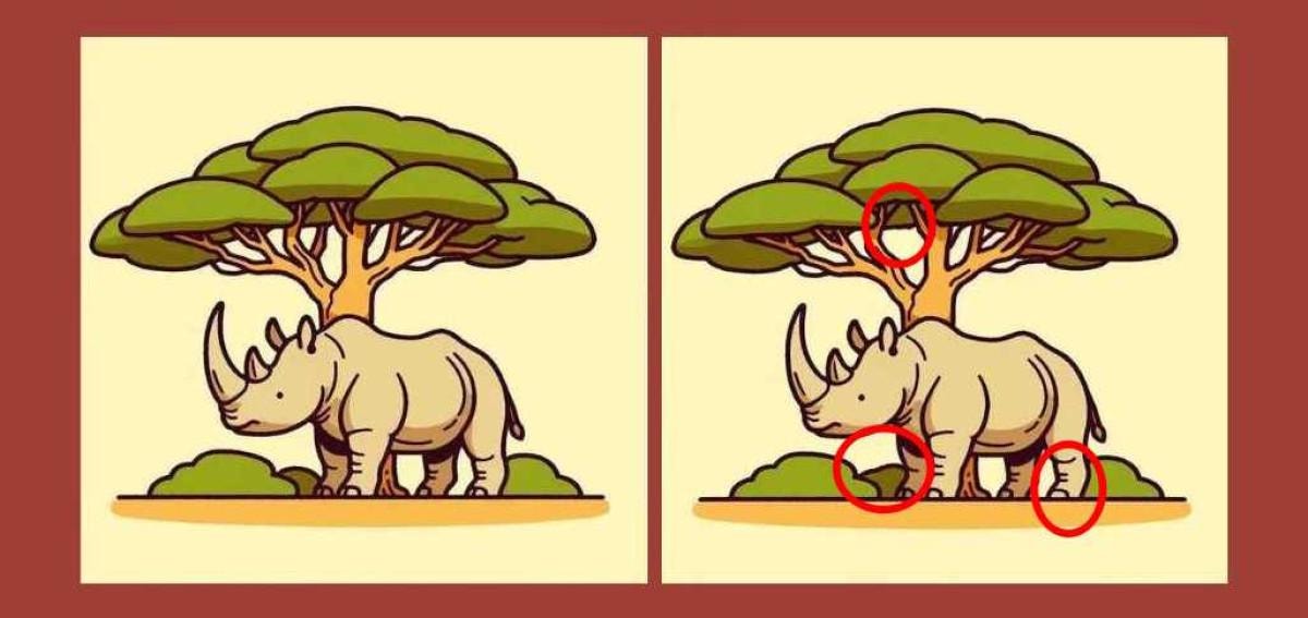 Resimdeki gergedanlar arasındaki 3 farklı 11 saniyede bulabilir misiniz?