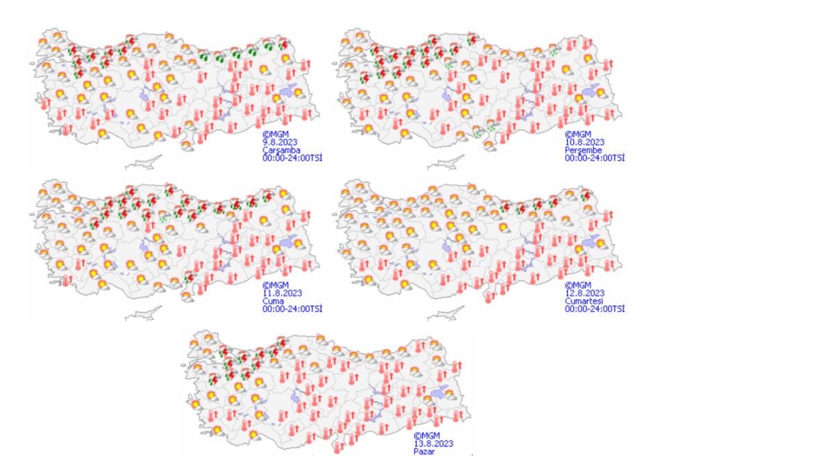 Meteoroloji Genel Müdürlüğü tarafından yapılan son değerlendirmelere göre: Ülkemizin kuzey kesimlerinin parçalı, yer yer çok bulutlu, Marmara'nın doğusu, Batı Karadeniz'in batı kıyıları ile Orta ve Doğu Karadeniz kıyı illerinin yerel sağanak ve yer yer gök gürültülü sağanak yağışlı, diğer yerlerin az bulutlu ve açık geçeceği tahmin ediliyor.